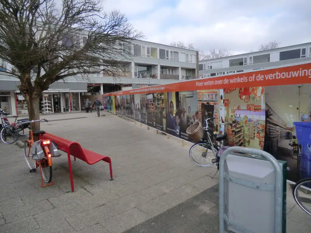 Door de schutting te voorzien van een print kunnen bezoekers informatie over de ontwikkeling opdoen en middels ‘kijkgaten’ zelfs de bouwwerkzaamheden volgen. De schutting zal tot augustus blijven staan. 19 augustus opent Vomar Voordeelmarkt haar deuren en wordt het Mereveldplein in nieuwe toestand geopend.
