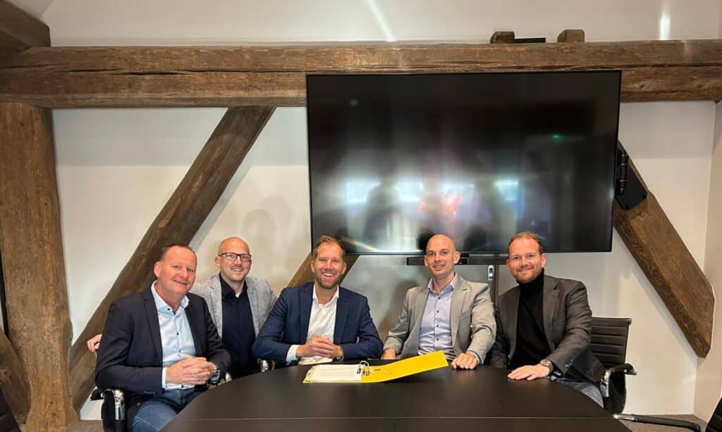 Van links naar rechts op de foto: Mark Tervoort, Arnout Vos, Paul van der Eng, Peter Hommes en Joost Blankendaal